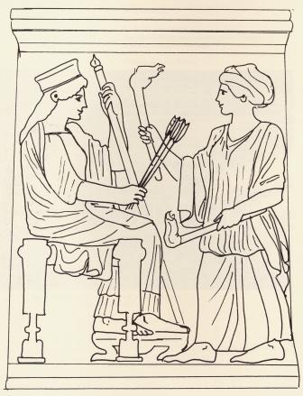 4. Στην αρχαιότητα, οι ναοί, τα αγάλματα, τα ανάγλυφα ήταν χρωματισμένα με έντονα χρώματα, τα οποία με την πάροδο των αιώνων ξεθώριασαν ή χάθηκαν τελείως. Μπορείτε να βγάλετε φωτοτυπίες του σχεδίου από το αρχαίο αναθηματικό ανάγλυφο του Μουσείου Ελευσίνας και κάθε μαθητής να χρωματίσει το δικό του αντίγραφο, όπως φαντάζεται ότι θα ήταν χρωματισμένο στην αρχαιότητα.