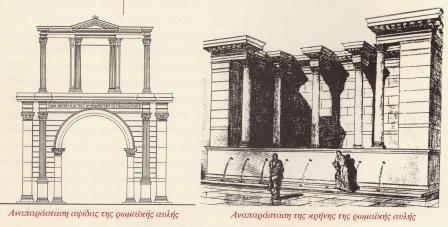Στη νότια πλευρά της Ρωμαϊκής Αυλής υψώνονταν τα Μεγάλα Προπύλαια, χτισμένα το 2ο αι. μ.Χ., με πρότυπο τα Προπύλαια της Ακροπόλεως των Αθηνών. Το αέτωμα των