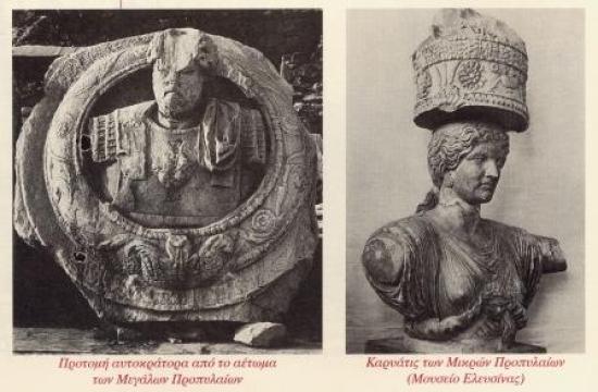 Μεγάλων Προπυλαίων, που το διακοσμούσε η προτομή ενός Ρωμαίου αυτοκράτορα, μάλλον του Μάρκου Αυρήλιου, έχει ανασυντεθεί και εκτίθεται στη Ρωμαϊκή Αυλή. Στα ανατολικά των Μεγάλων Προπυλαίων υπάρχει ένα καλοχτισμένο πηγάδι, αρχαϊκών χρόνων (6ος αι. π.Χ.), που ταυτίζεται με το «Καλλίχορον Φρέαρ» του Ομηρικού Ύμνου στη Δήμητρα.