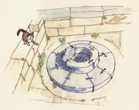-Να εκεί πίσω είναι, κοίτα το! είπε η Μαργαρίτα και πηδώντας από την κορυφή του κίονα, έδειξε ένα πηγάδι που είχε στόμιο καλοχτισμένο, με μεγάλες γκρίζες πέτρες. Το ονόμαζαν Καλλίχορο, συνέχισε η γάτα, γιατί τα κορίτσια της Ελευσίνας, έπαιρναν νερό από εδώ και έστηναν τριγύρω του καλούς, ωραίους χορούς