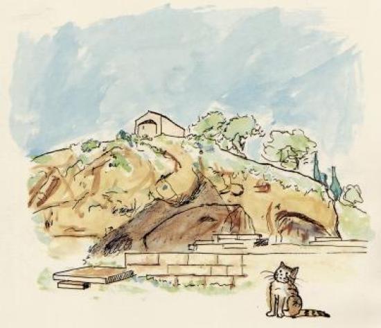 -Να εκεί, στην πλαγιά, κάτω από την κορυφή του λόφου, έδειξε με το μπροστινό της πόδι η Μαργαρίτα.